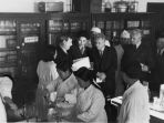 В.Д. Тимаков со студентами и сотрудниками Пхеньянского медицинского института обсуждает план помощи в решении научных вопросов. 1957 г.